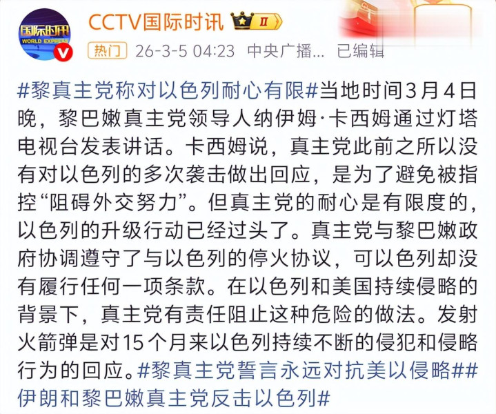 虽然真主党发火箭弹没啥大动静,但以色列借机动员了十几万预备役,还狂轰滥炸真主党总部。